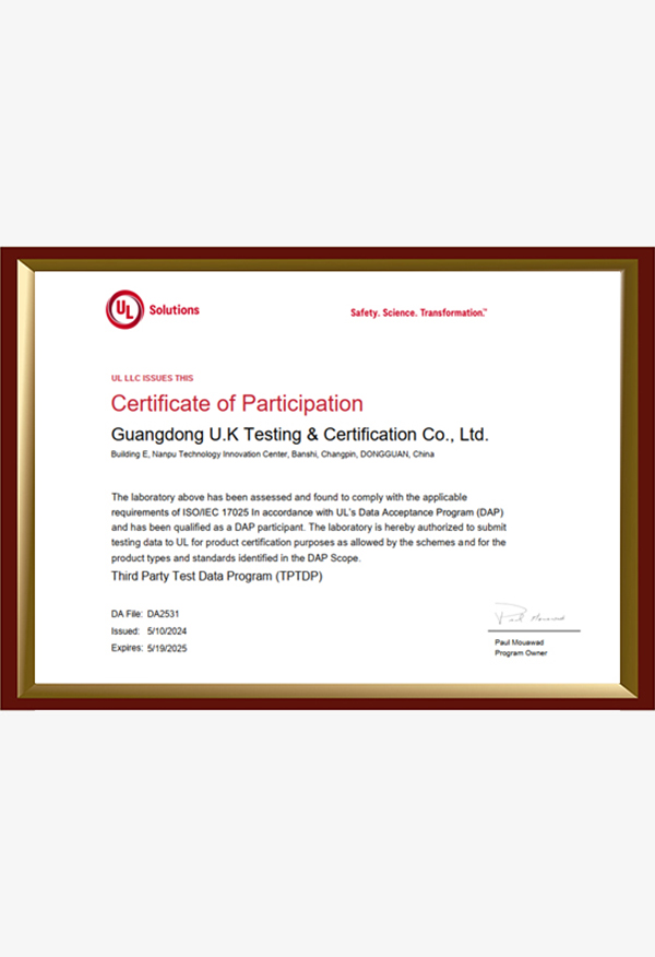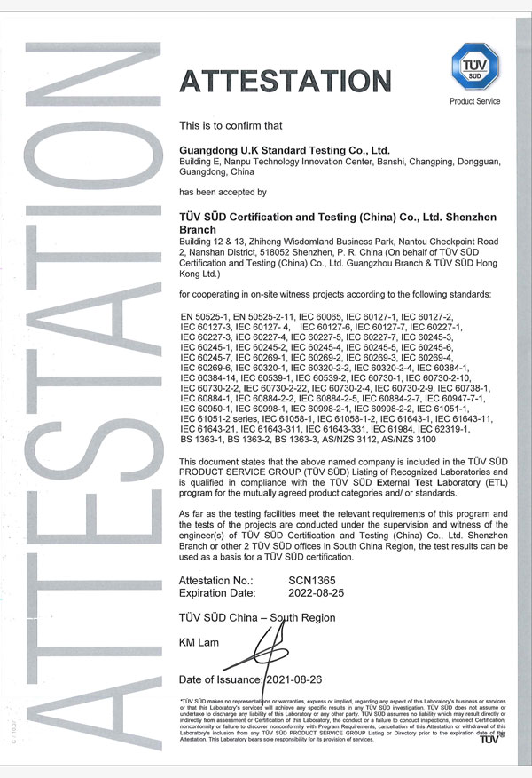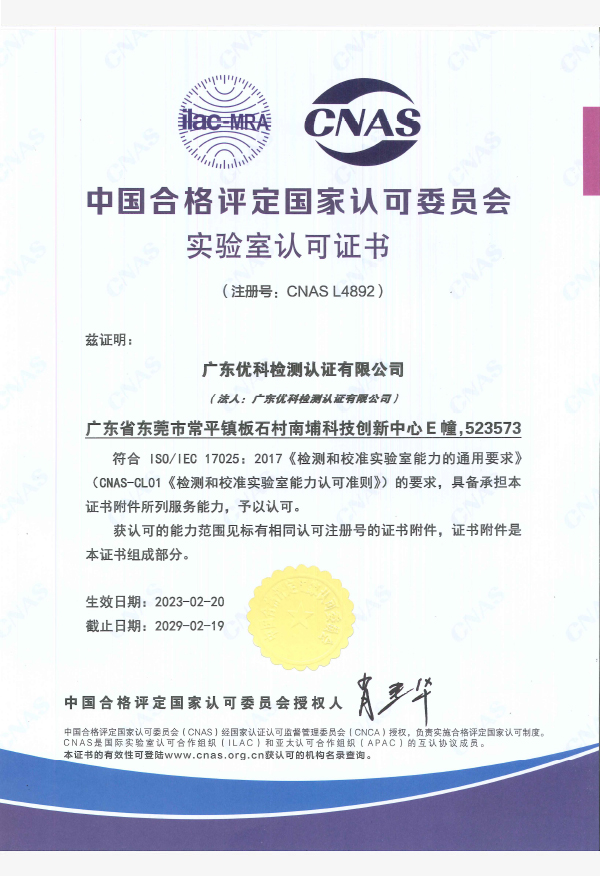 廣東優(yōu)科檢測認證有限公司(簡稱:UKK)成?于2007年,是國內(nèi)專業(yè)的汽車整車及零部件、電子元器件第三方檢測實驗室,國家級中小企業(yè)公共(技術(shù))服務(wù)示范平臺,獲得了國家?新技術(shù)企業(yè)、廣東省專精特新中小企業(yè)、市級工程技術(shù)研發(fā)中心等榮譽稱號。 More